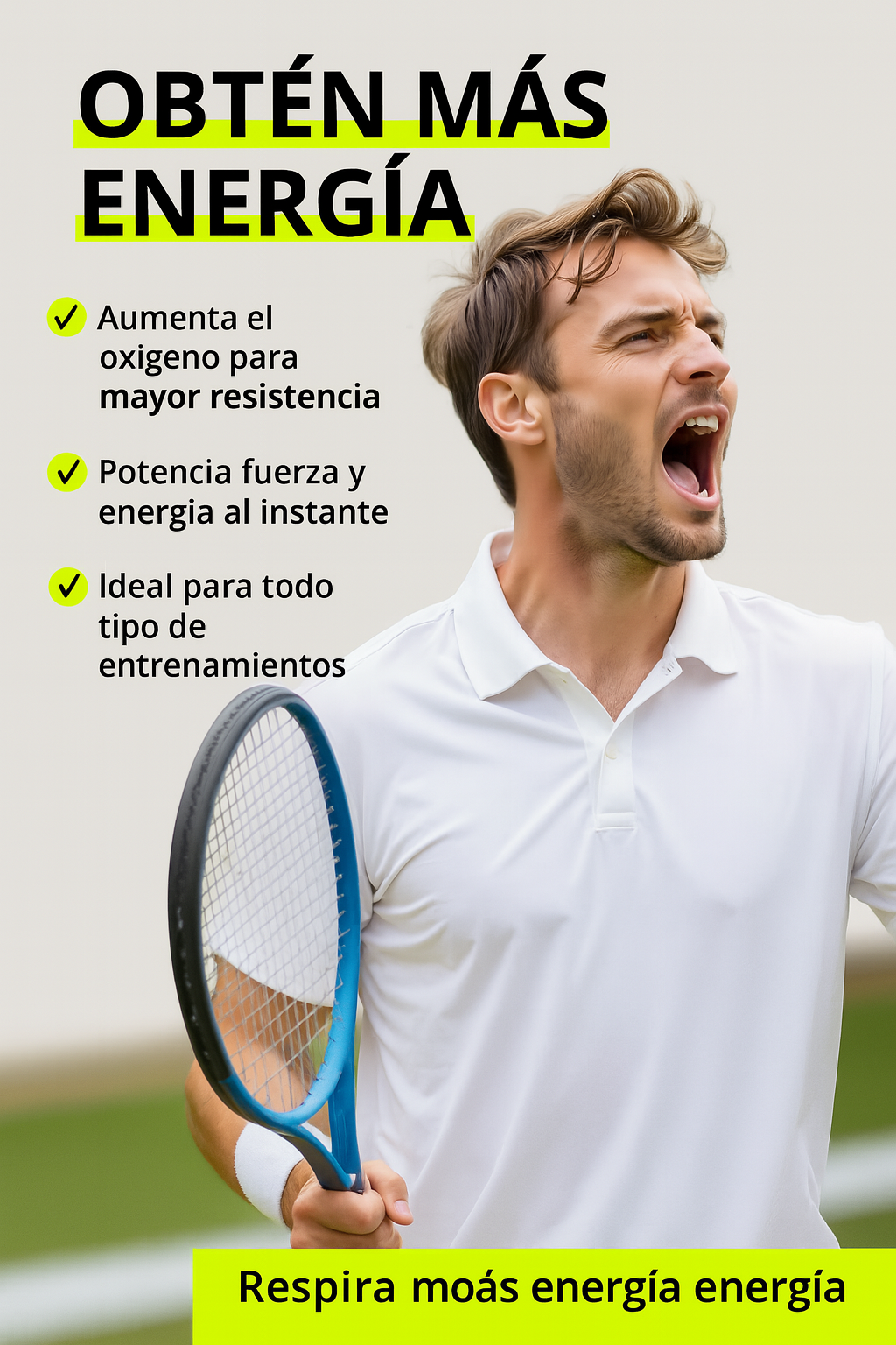 Favorece el ingreso de oxígeno durante el deporte, ideal para correr, boxear, levantar pesas o simplemente respirar mejor. Más resistencia, más fuerza, más energía.